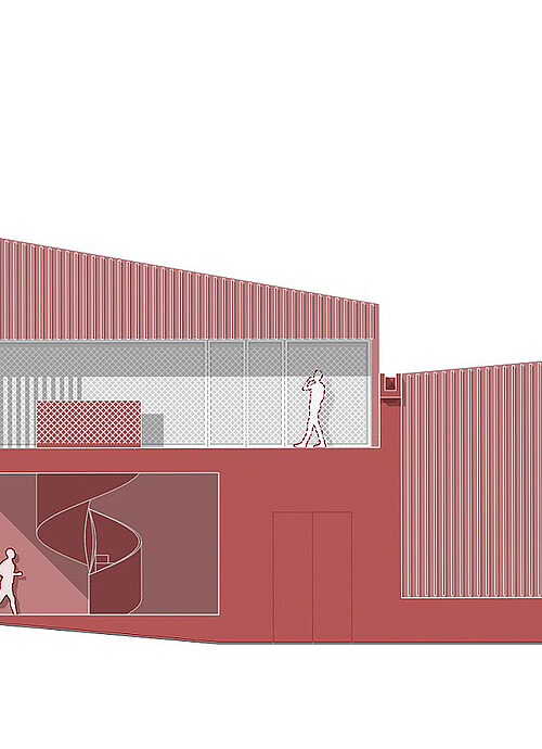Was für eine gute Entscheidung, die Freiwillige Feuerwehr zur Stärkung dieses Ehrenamtes im Ortskern zu belassen. Locker gestreut liegen ehemalige Hofanlagen im Wechsel mit innerörtlichen, baumbestandenen Grünflächen am dörflichen Wegenetz westlich der Hauptstraße, die eng bestanden mit giebelständigen Häusern die Richtung nach Göttingen vorgibt. Entgegen der Auslobung, Abstand zur Hauptstraße zu halten, wird das neue Feuerwehrhaus ganz bewusst ins Blickfeld entlang der Hauptstraße geschoben und rückt soweit wie möglich an den öffentlichen Raum heran.